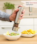 Always season with precision using the Electric Salt & Pepper Grinder Set – sleek, durable, and designed for effortless one-handed operation. Made from premium 304 stainless steel with an upgraded motor to prevent spice corrosion, it features a built-in LED light, adjustable ceramic grinder, and washable spice cup. Perfect for salt, pepper, and more – a must-have for every kitchen and the ultimate gift for cooking enthusiasts.