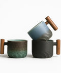Designed for comfort and style, the wooden handle offers a natural grip while the ceramic body comes in three stunning colours: Ocean Blue, Forest Green, and Midnight Slate. It's the perfect blend of function, beauty, and individuality.