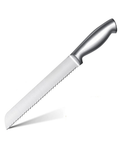 Cut perfect slices every time with the Stainless Steel Serrated Bread Knife. Featuring an ultra-sharp 8-inch serrated blade with a rubber safety tip, it glides through crusty loaves, cakes, and pastries with ease. Made from durable stainless steel, its one-piece design ensures strength and longevity without bending or dulling.